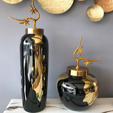 Set of Gold & Black Chromatic finish Ceramic Jars with Metal Cap